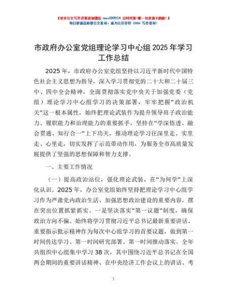 / 市政府办公室党组理论学习中心组2025年学习工作总结