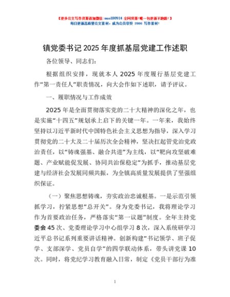 / 镇党委书记2025年度抓基层党建工作述职