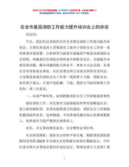 / 在全市基层消防工作能力提升培训会上的讲话