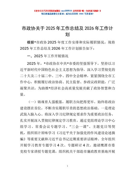/ 市政协关于2025年工作总结及2026年工作计划