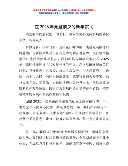 / 在2026年元旦前夕的新年贺词