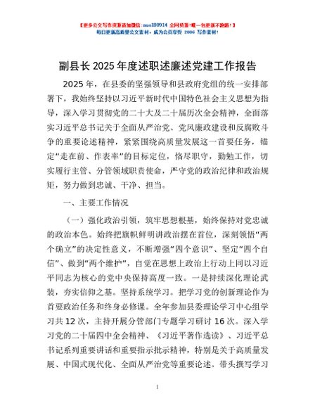/ 副县长2025年度述职述廉述党建工作报告