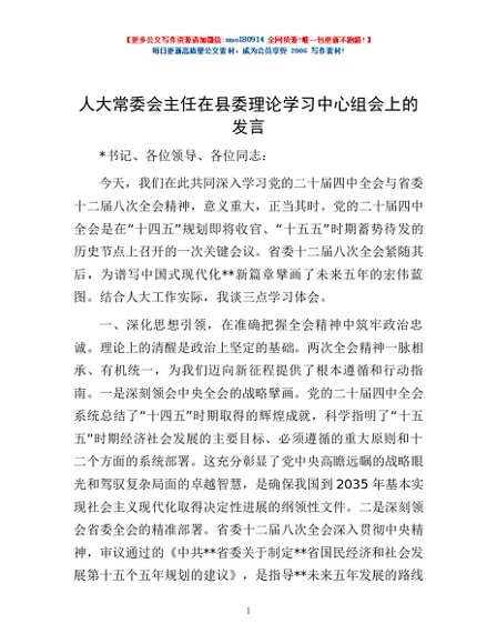 / 人大常委会主任在县委理论学习中心组会上的发言