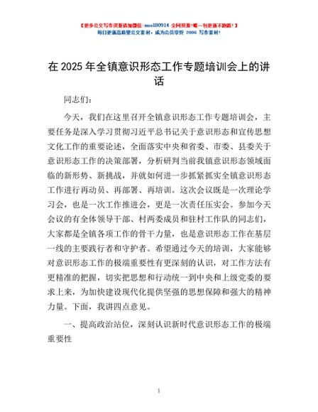 / 在2025年全镇意识形态工作专题培训会上的讲话