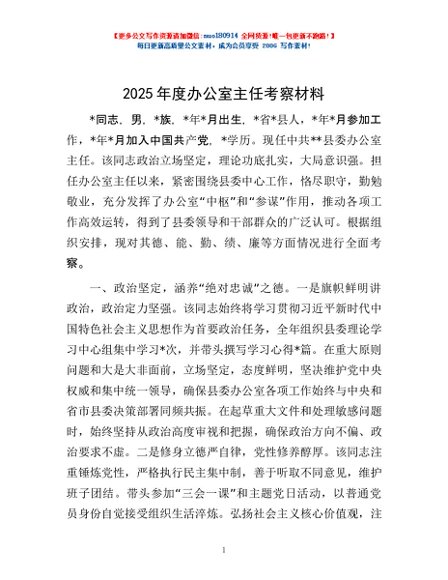 / 2025年度办公室主任考察材料