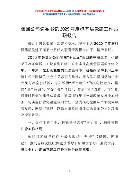 / 集团公司党委书记2025年度抓基层党建工作述职报告