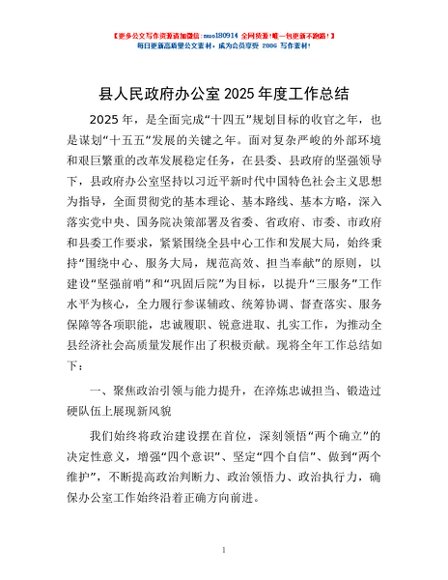 / 县人民政府办公室2025年度工作总结