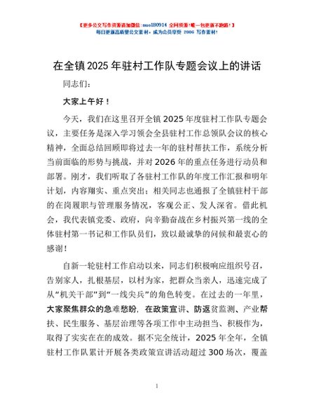 / 在全镇2025年驻村工作队专题会议上的讲话