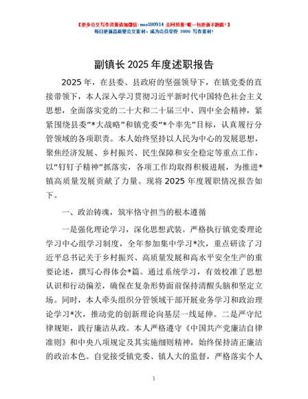 / 副镇长2025年度述职报告