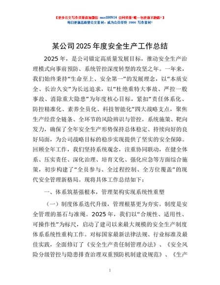 / 某公司2025年度安全生产工作总结