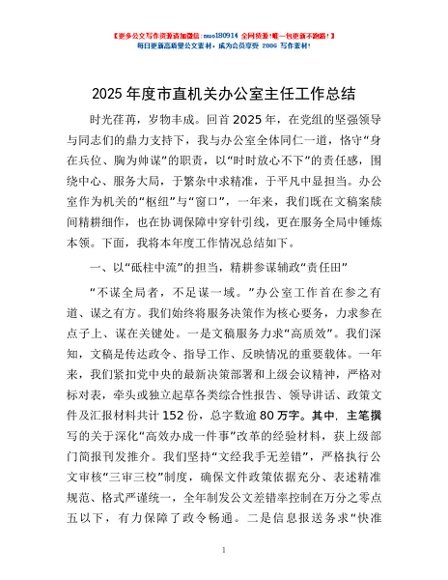 / 2025年度市直机关办公室主任工作总结