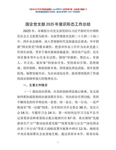 / 国企党支部2025年意识形态工作总结
