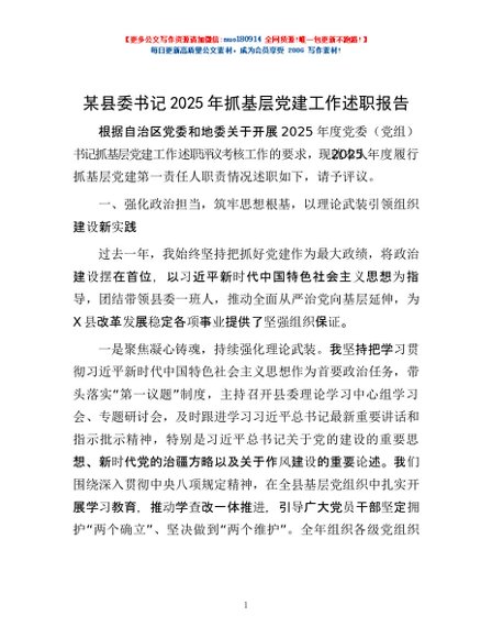 / 某县委书记2025年抓基层党建工作述职报告