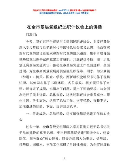 / 在全市基层党组织述职评议会上的讲话