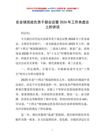 / 在全镇党政负责干部会议暨2026年工作务虚会上的讲话