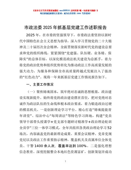 / 市政法委2025年抓基层党建工作述职报告