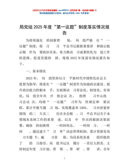 / 局党组2025年度“第一议题”制度落实情况报告