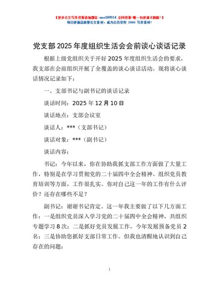 / 党支部2025年度组织生活会会前谈心谈话记录