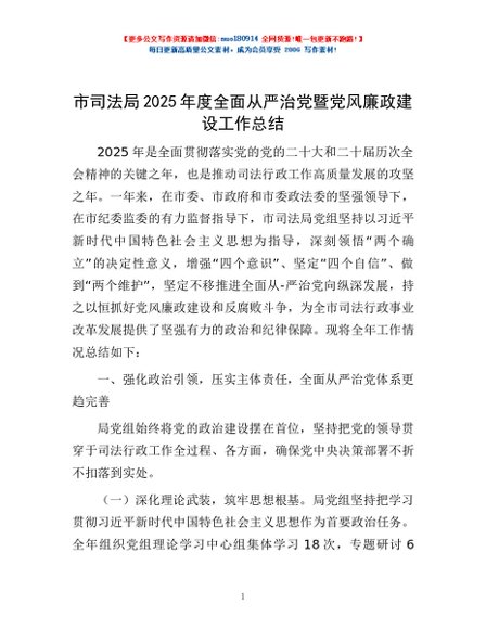 / 市司法局2025年度全面从严治党暨党风廉政建设工作总结