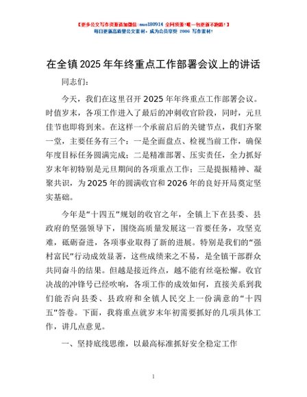/ 在全镇2025年年终重点工作部署会议上的讲话