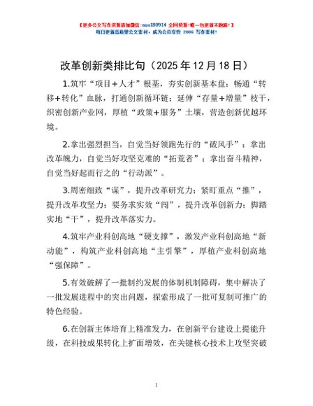 / 改革创新类排比句(2025年12月18日)