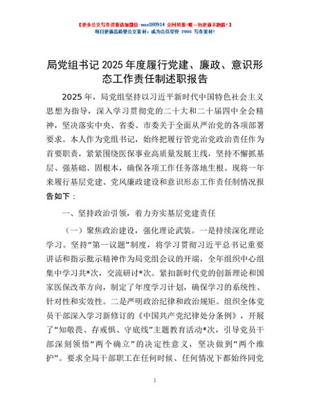 / 局党组书记2025年度履行党建、廉政、意识形态工作责任制述职报告