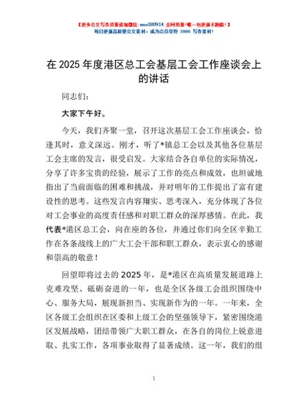 / 在2025年度港区总工会基层工会工作座谈会上的讲话
