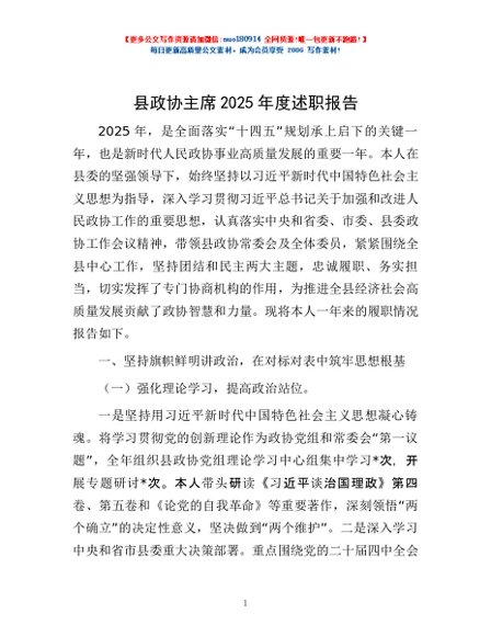 / 县政协主席2025年度述职报告