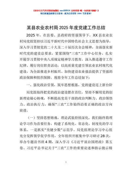 / 某县农业农村局2025年度党建工作总结