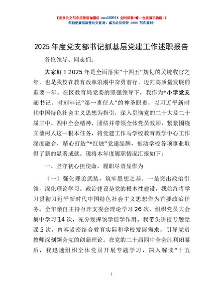 / 2025年度党支部书记抓基层党建工作述职报告
