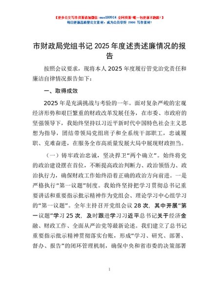 / 市财政局党组书记2025年度述责述廉情况的报告
