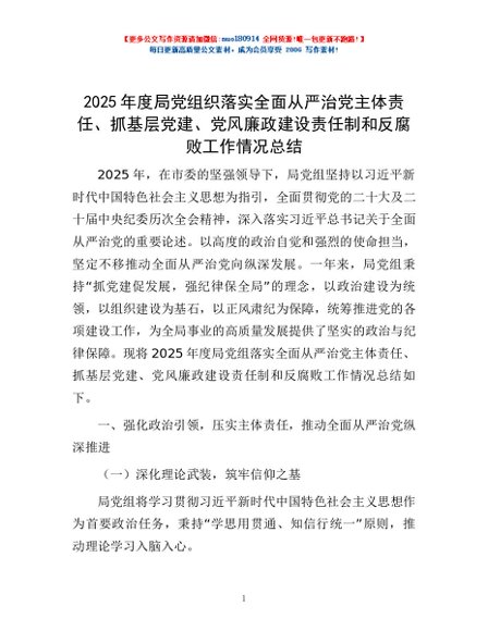 / 2025年度局党组织落实全面从严治党主体责任、抓基层党建、党风廉政建设责任制和反腐败工作情况总结