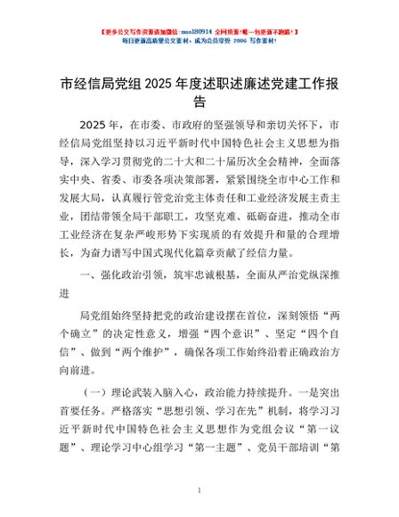 / 市经信局党组2025年度述职述廉述党建工作报告