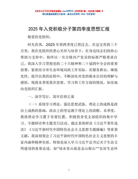 / 2025年入党积极分子第四季度思想汇报