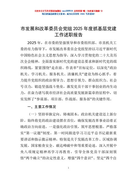 / 市发展和改革委员会党组2025年度抓基层党建工作述职报告