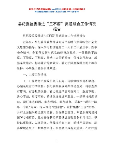 / 县纪委监委推进“三不腐”贯通融合工作情况报告
