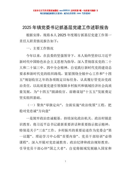 / 2025年镇党委书记抓基层党建工作述职报告