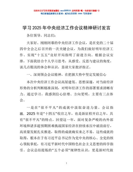 / 学习2025年中央经济工作会议精神研讨发言