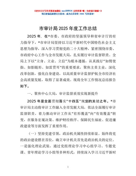 / 市审计局2025年度工作总结