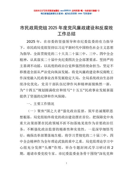 / 市民政局党组2025年度党风廉政建设和反腐败工作总结