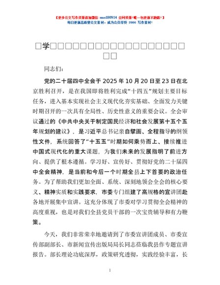 / 在学习贯彻全会精神市委宣讲团报告会上的主持词