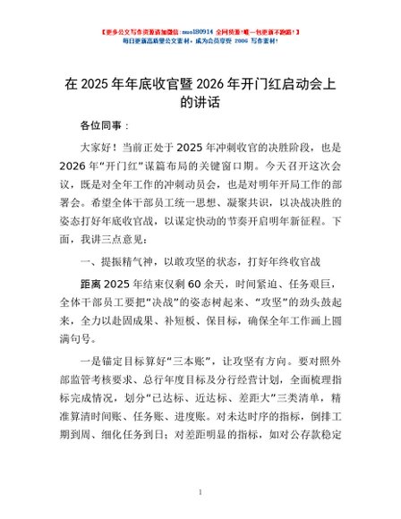 / 在2025年年底收官暨2026年开门红启动会上的讲话