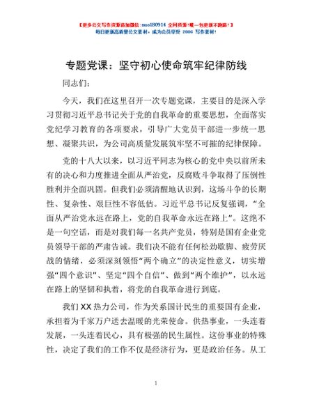 / 专题党课:坚守初心使命 筑牢纪律防线