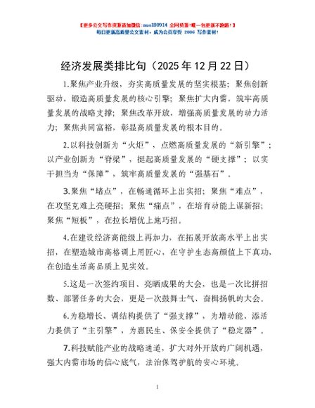 / 经济发展类排比句(2025年12月22日)