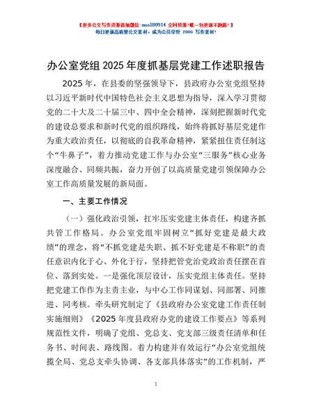 / 办公室党组2025年度抓基层党建工作述职报告