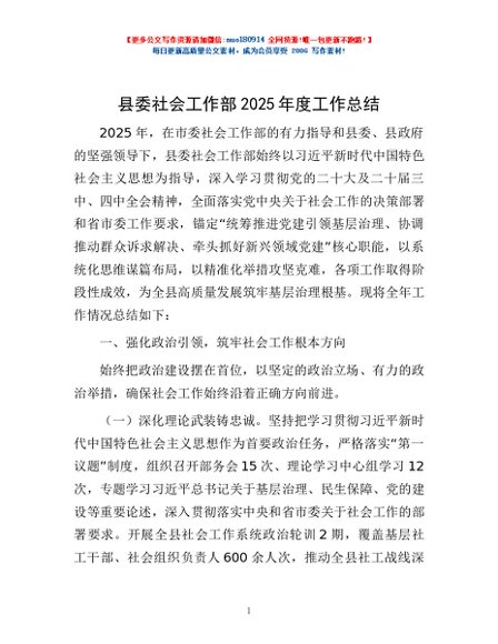 / 县委社会工作部2025年度工作总结
