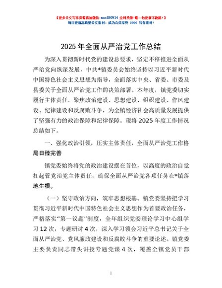 / 2025年全面从严治党工作总结