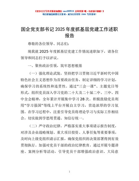 / 国企党支部书记2025年度抓基层党建工作述职报告