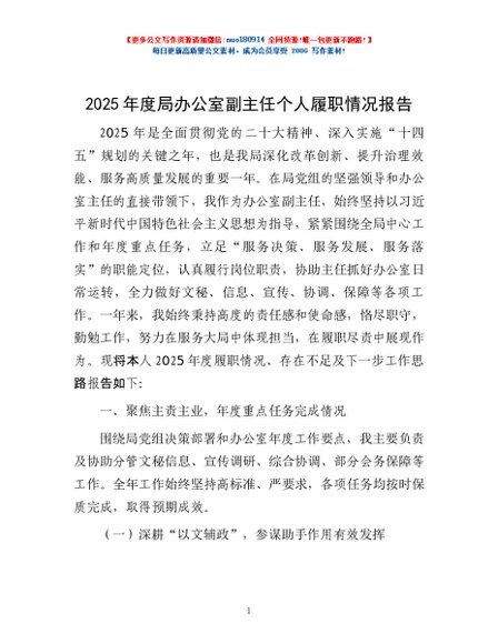 / 2025年度局办公室副主任个人履职情况报告
