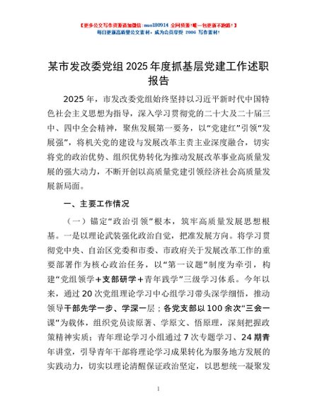 / 某市发改委党组2025年度抓基层党建工作述职报告